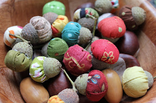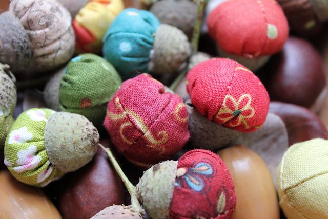 Tymczasem pokażę to co udało mi się doprowadzić do końca. Jesiennych klimatów ciąg dalszy. Lubicie dęby? Ja często noszę w kieszeniach kasztany i żołędzie. Wczoraj te, które straciły kapelusze "reanimowałam" wg pomysłu Sary.
